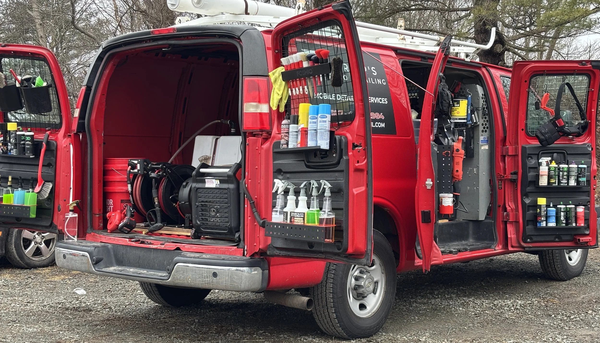 Our Own Water, Power and Equipment No hookups needed. My fully equipped detailing van brings everything to your location.
